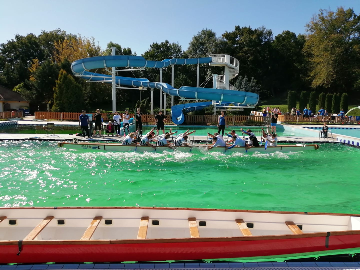 závodech přetlačování na bazénu pražské Slavie, která má stejné rozměry jako